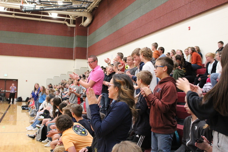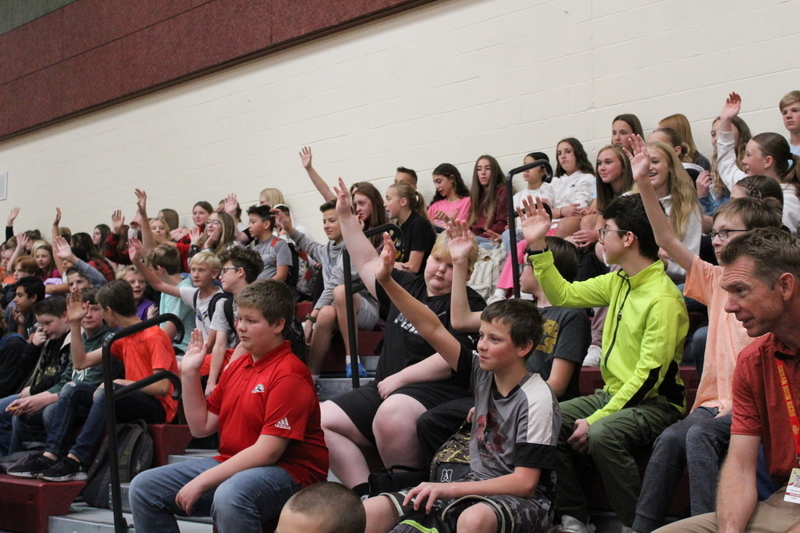 Next, they had the senior students answer some questions that the CMS middle schoolers had for them. Some questions were simple, like “What’s your favorite food?” while others hyped up the crowd like “What’s the best instrument?” When that question was asked, various band members held up their instruments and cheered, and the person behind me enthusiastically yelled “Percussion! Percussion is the best!”.